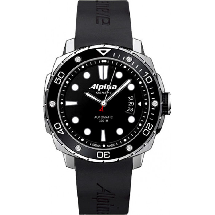 Завинчивающаяся заводная головка, нержавеющая сталь с рифлением из черной резины инсессртВстроенный красный логотип Alpina |
