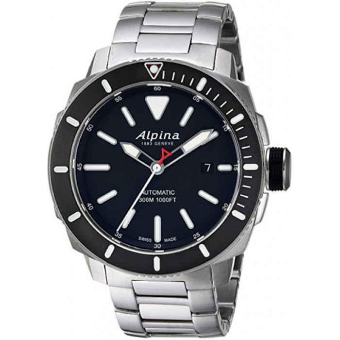 Завинчивающаяся заводная головка, нержавеющая сталь рифленая с черной резиновой вставкой,Встроенный красный логотип Alpina |