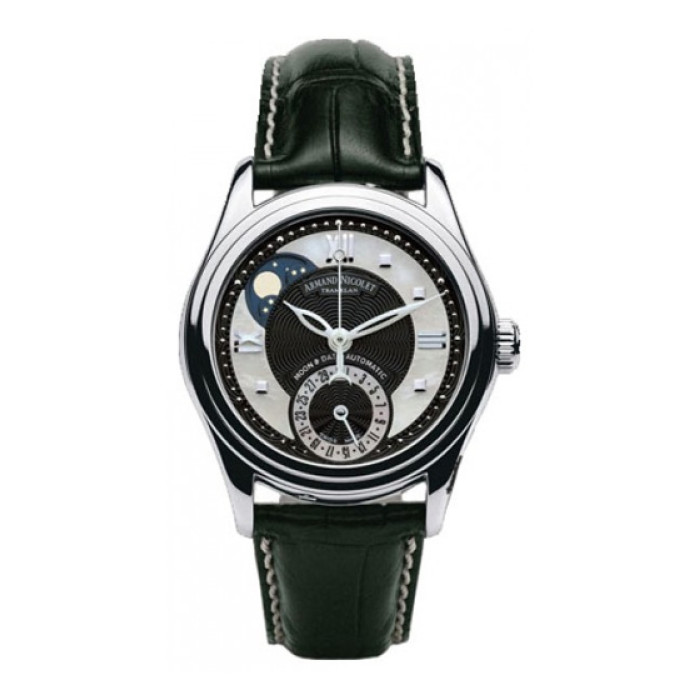 Диаметр: 34 мм. Механизм с автоподзаводом. Калибр: AN9231-2892. Индикация даты. Фаза луны. Гильошированный циферблат. Прозрачная задняя крышка. Ремешок из кожи аллигатора с браслетной застежкой