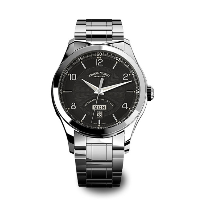 Диаметр: 43 мм. Толщина: 12 мм. Механизм с автоподзаводом. Калибр AN 2846-9. Индикация даты, дня недели. Гильошированный циферблат с накладными индексами и арабскими цифрами, светящиеся точки и стрелки. Прозрачная задняя крышка. Браслет: Нержавеющая сталь 316L