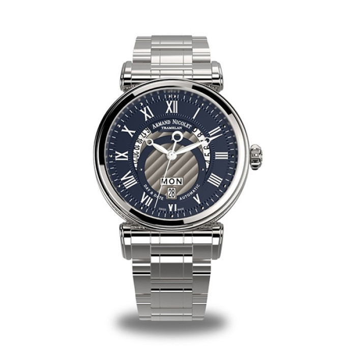 Диаметр: 43 мм. Механизм с автоподзаводом. Калибр AN 2846-9. Индикация даты, дня недели. Гильошированный циферблат с открытыми пространствами, которые показывают часть механического движения. Прозрачная задняя крышка корпуса. Римские цифры. Браслет: Нержавеющей сталь стеклом 316L