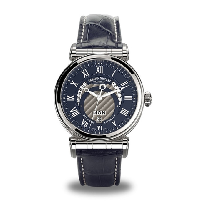 Диаметр: 43 мм. Механизм с автоподзаводом. Калибр AN 2846-9. Индикация даты, дня недели. Гильошированный циферблат с открытыми пространствами, которые показывают часть механического движения. Прозрачная задняя крышка корпуса. Римские цифры. Кожаный ремешок