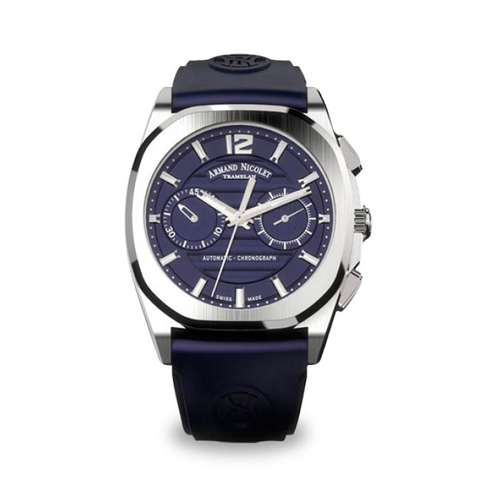 Диаметр: 41 мм. Толщина:15 мм. Механизм с автоподзаводом. Калибр 2045/2872. Хронограф. Гильошированный циферблат со светящимися индексами и стрелками. Прозрачная задняя крышка корпуса. Синий каучуковый ремешок
