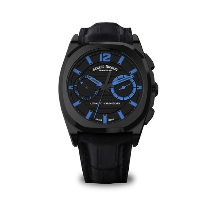 Диаметр: 41 мм. Толщина:15 мм. Механизм с автоподзаводом. Калибр 2045/2872. Хронограф. Гильошированный циферблат со светящимися индексами и стрелками. Прозрачная задняя крышка корпуса. Черный ремешок из кожи аллигатора
