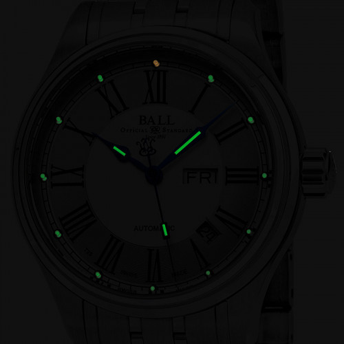 Окно отображения дня недели в позиции 3 часа и окно отображения даты между позициями 4 и 5 часов |