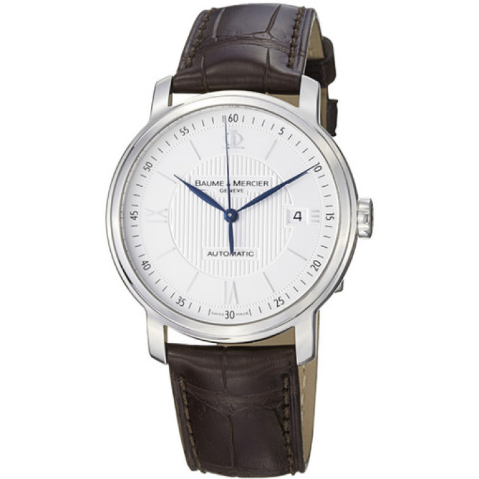 Швейцарские часы Baume&Mercier, MOA08791 из коллекции Classima. Часы Баум И Мерсье являются солидным аксессуаром, подчёркивающим ваш вкус. В данной модели тип калибра - механический. В качестве материала корпуса используется сталь. Материалом ремня является кожа. На циферблате есть указатель даты. Размер часов D 39 мм.