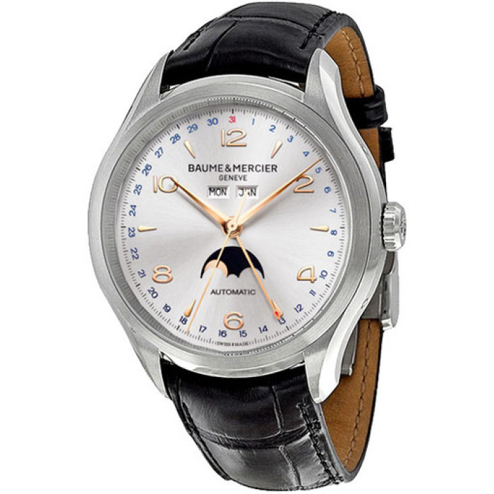 Перед вами часы фирмы Baume&Mercier, Швейцария. Данный артикул MOA10055 принадлежит коллекции Clifton. Прекрасный образец классических часов Баум И Мерсье для людей, ценящих, в первую очередь, своё время. Тип механизма в часах - механический. В качестве материала корпуса используется сталь. Материалом ремня является кожа. Также в часах имеется указатель даты. Габариты корпуса - D 43 мм.