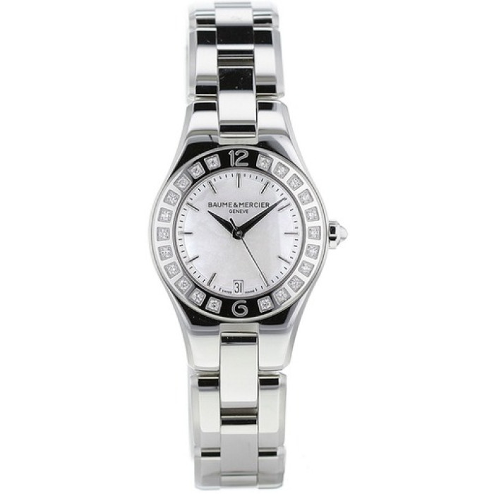 Перед вами часы фирмы Baume&Mercier, Швейцария. Данный артикул M0A10078 принадлежит коллекции Linea. Часы Бом энд Мерсье идеально подойдут любительницам изящной простоты и функциональности. Тип механизма в часах - кварцевый. В качестве материала корпуса и браслета используется сталь. Часы украшены бриллиантами. На циферблате есть указатель даты. Габариты корпуса - D 27 мм.