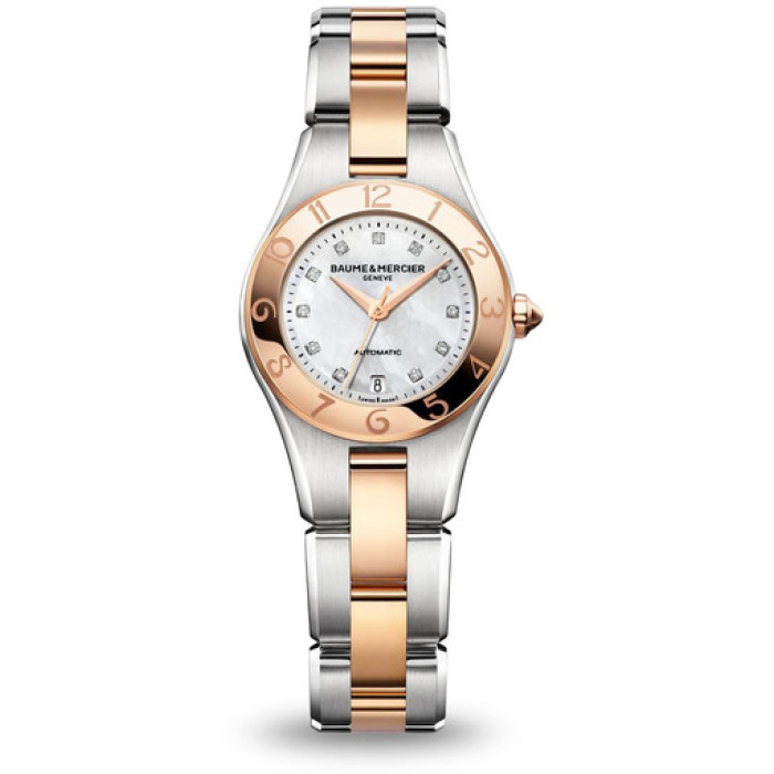Часы Baume&Mercier - надёжный ориентир во времени. Данная модель MOA10114 входит в коллекцию Linea. Производство - Швейцария. Часы Баум И Мерсье идеально подойдут любительницам изящной простоты и функциональности. Тип механизма в часах - механический. В качестве материала корпуса используется золото+сталь. Материалом браслета является сталь и золото. Часы также инкрустированы бриллиантами. На циферблате есть указатель даты. Среди прочих преимуществ часов - их водостойкость. Размер часов D 27 мм.