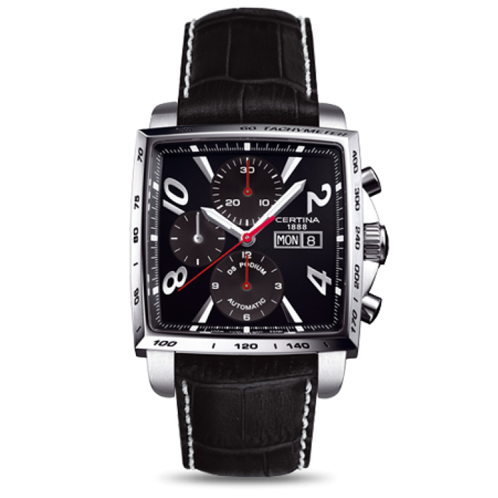 Размер корпуса: 39 x 39 мм. Мужские механические часы. Дополнительные функции и особенности: дата, день недели, хронограф, тахиметр.
