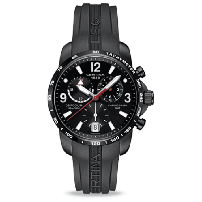 Диаметр корпуса: 42 мм. Швейцарский кварцевый механизм ETA, калибр G10.961, на 4 камнях. Точность хода с погрешностью не более -10/+15 секунд в месяц. Элемент питания №394 со сроком службы 38 месяцев. Хронограф с функцией ADD и SPLIT, центральная секундная стрелка, 60-минутный и 12-часовой индикаторы на«2 часах». Индикатор времени второго часового пояса GMT в 24-часовом формате на отметке «10 часов». Центральные часовая и минутная стрелки, маленькие секунды на «6 часах». Индикация даты в апертуре на отметке «6 часов». Функция EOL - индикация низкого уровня заряда батареи при помощи движения секундной стрелки. Безель с гравированной разметкой тахиметрической шкалы. Циферблат с матовой поверхностью, аппликация цифр и элементов оформления. Стрелки и индексы с покрытием Super-LumiNova® Защелкивающаяся задняя крышка с гравированным логотипом бренда. Каучуковый ремешок с тиснением, стандартная застежка с шипом.