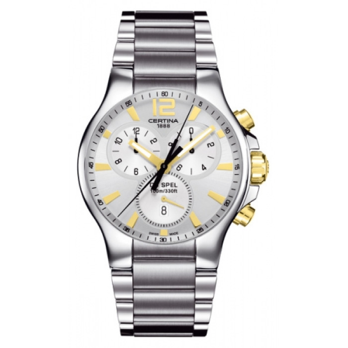 Диаметр корпуса: 41 мм. Кварцевый хронограф. Механизм калибр 541 на базе ETA 251.262 (на 27 камнях). Секундная стрелка смещена на маленький циферблат (в 6 часов). Дополнительные циферблаты хронографа: на 12 часов и 1/10 доли секунд. Секундомер с режимами ADD и SPLIT. Окошко даты. Функция отображения времени во втором часовом поясе. Светонакопительный состав на стрелках. Особая технология повышения надежности и защиты от проникновения влаги DS (Double Security) - специальное устойчивое к вибрации и ударам крепление механизма, дополнительные прокладки в конструкции заводной головки и сопряжении задней крышки и корпуса часов.