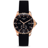 Диаметр корпуса: 34,8 мм. Точность хода не хуже -10 +15 сек./в месяц. Смещенная секундная стрелка. Индикатор даты. Стальной безель с керамической вставкой и минутной индикацией. Циферблат с накладными часовыми маркерами, покрытыми PVD-составом цвета розового золота.