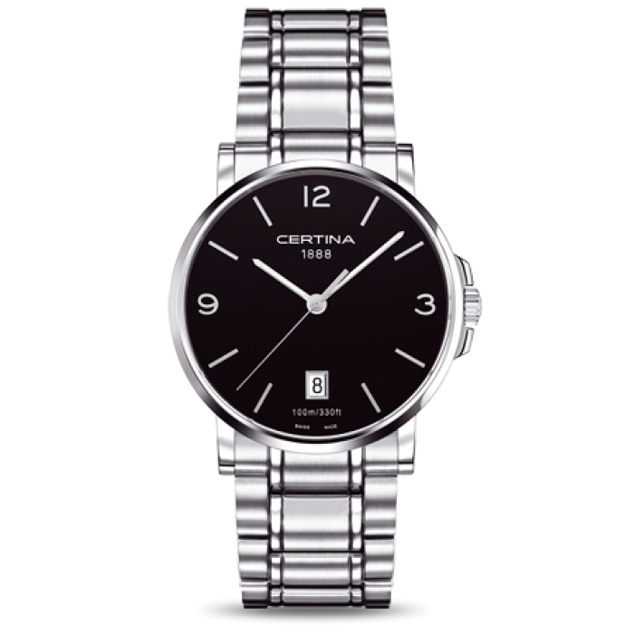 Диаметр корпуса: 38 мм. Индикация даты. Кварцевые часы Certina. Особая технология повышения надежности и защиты от проникновения влаги DS (Double Security) - специальное устойчивое к вибрации и ударам крепление механизма, дополнительные прокладки в конструкции заводной головки и сопряжении задней крышки и корпуса часов. Высокопрочное антибликовое сапфировое стекло.