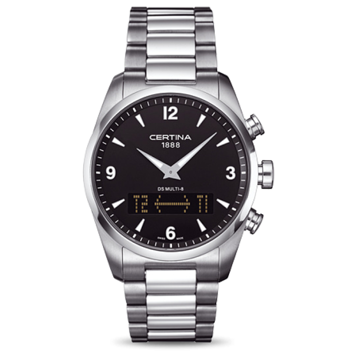 Диаметр корпуса: 42 мм. Точный кварцевый механизм хронографа, мультифункциональные часы, аналоговая индикация, часы, минуты, секунды, окошко для даты, отображения дня недели, месяца и года. Стальной круглый корпус, жидкокристаллический дисплей, стрелки и метки с люминисцентным покрытием, таймер обратного отсчета.