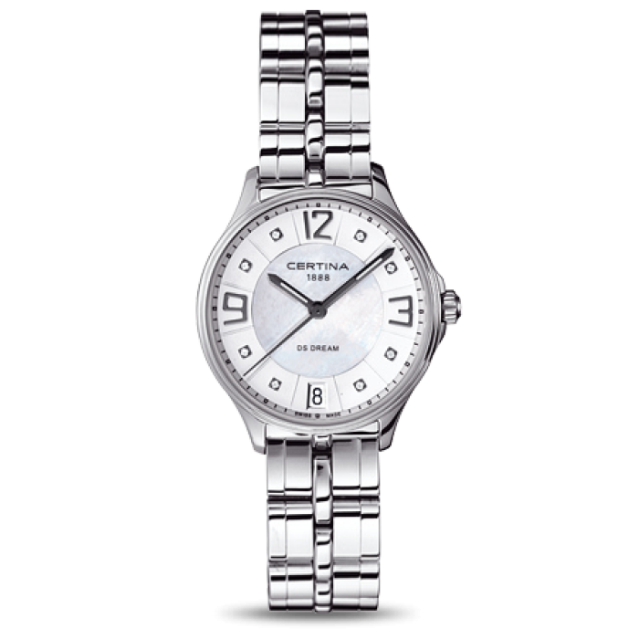Дтиаметр корпуса: 30,5 мм. Кварцевые часы с функцией индикации заряда (EOL). Индикация числа. Циферблат украшен 8 бриллиантами. Стрелки с люминесцентным покрытием.