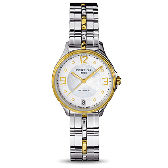 Дтиаметр корпуса: 30,5 мм. Кварцевые часы с функцией индикации заряда (EOL). Индикация числа. Циферблат украшен 8 бриллиантами. Стрелки с люминесцентным покрытием.