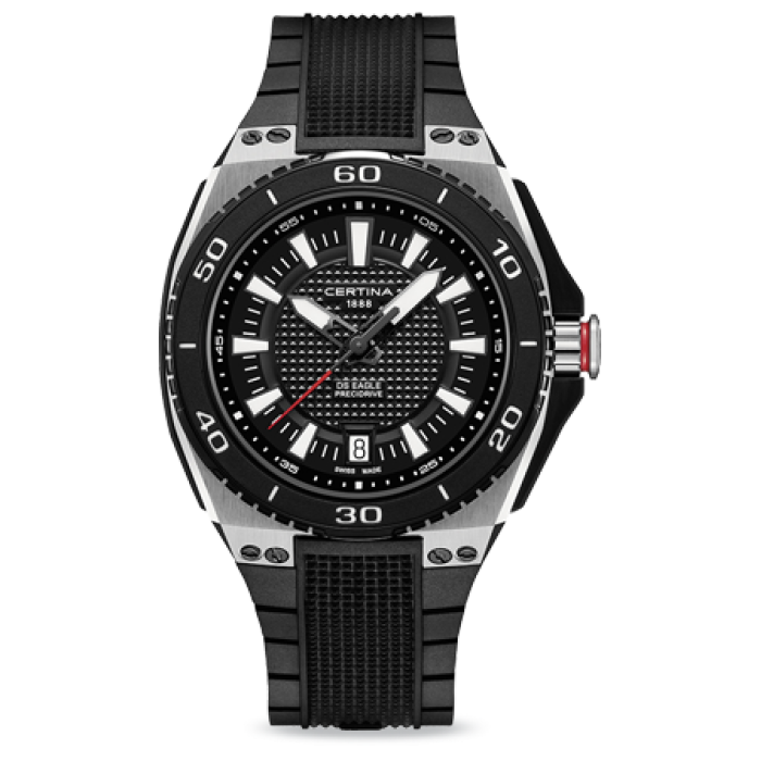 Диаметр корпуса: 44 мм. Швейцарский кварцевый механизм ETA F07.411 Precidrive. Часы, минуты, секунды, дата. Система противоударной и антивибрационной защиты механизма DS (Double Security). Привинчивающийся безель с вставками