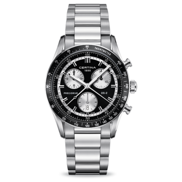 Диаметр корпуса: 41 мм. Швейцарский кварцевый механизм ETA, калибр 251.264 AA PowerDrive & PreciDrive™, на 27 камнях. 5 шаговых электромоторов обеспечивают быструю работу механизма. Повышенная точность хода с погрешностью не более -/+10 секунд в год. Хронограф с функцией ADD и SPLIT, центральная секундная стрелка, 60-минутный и 12-часовой индикаторы на«2» и «10 часах» соответственно. Указатель 1/100 долей секунды при помощи дополнительной центральной стрелки. Центральные часовая и минутная стрелки, маленькие секунды на «6 часах».