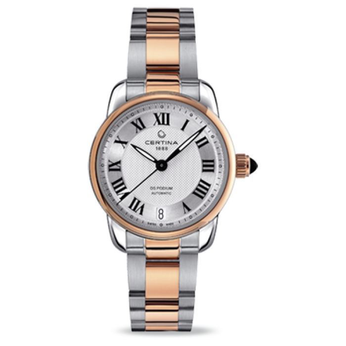 Индикация даты в апертуре на отметке «6 часов». Сапфировое стекло повышенной стойкостью к возникновению царапин. Циферблат с гильошированием, цифры и метки выполненные методом аппликации. Защелкивающаяся задняя крышка с прозрачным окном.