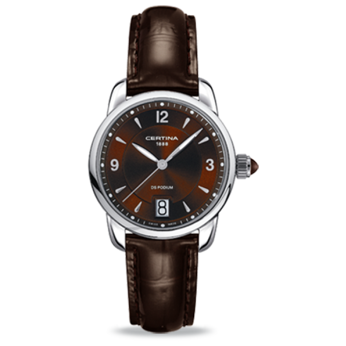 Диаметр корпуса: 32,5 мм. Швейцарский кварцевый механизм. Точность хода с погрешностью не более -10/+15 секунд в месяц. Центральные часовая, минутная и секундная стрелки. Большая индикация даты в апертуре на отметке «6 часах». Функция EOL - индикация низкого уровня заряда батареи при помощи движения секундной стрелки. Переводная коронка украшена цветным кабошоном в тон циферблата или ремешка. Особая технология повышения надежности и защиты от проникновения влаги DS (Double Security) - специальное устойчивое к вибрации и ударам крепление механизма, дополнительные прокладки в конструкции заводной головки и сопряжении задней крышки и корпуса часов. Циферблат рельефный, аппликация часовых индексов и цифр или рисованные римские цифры. Стрелки и индексы с покрытием Super-LumiNova® Защелкивающаяся задняя крышка с гравированным логотипом бренда. Кожаный ремешок с тиснением «под аллигатора», браслетная застежка тройного сложения типа «бабочка», раскладывающаяся при нажатии на кнопки.