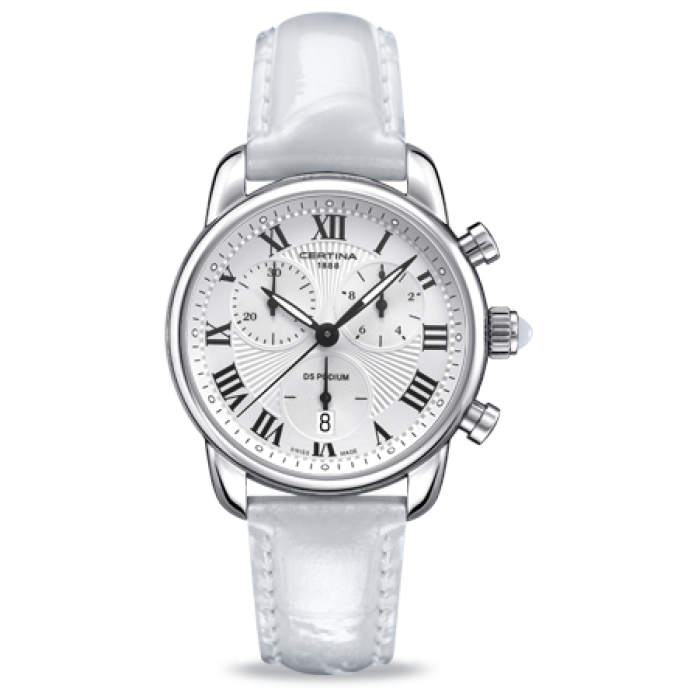 Переводная коронка украшена кабошоном. Циферблат с гильошированием, аппликация часовых индексов с алмазной огранкой или рисованные римские цифры. Стрелки и индексы с покрытием Super-LumiNova® Защелкивающаяся задняя крышка с гравированным логотипом бренда. Кожаный ремешок с тиснением «под аллигатора», браслетная застежка тройного сложения типа «бабочка», раскладывающаяся при нажатии на кнопки.