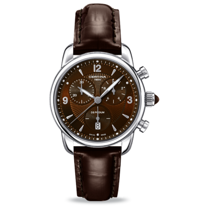 Переводная коронка украшена кабошоном. Циферблат с гильошированием, аппликация часовых индексов с алмазной огранкой или рисованные римские цифры. Стрелки и индексы с покрытием Super-LumiNova® Защелкивающаяся задняя крышка с гравированным логотипом бренда. Кожаный ремешок с тиснением «под аллигатора», браслетная застежка тройного сложения типа «бабочка», раскладывающаяся при нажатии на кнопки.