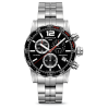 Диаметр корпуса: 42 мм. Швейцарский кварцевый механизм ETA, калибр G10.212 AA PreciDrive™, на 4 камнях. Повышенная точность хода с погрешностью не более -/+10 секунд в год. Хронограф с функцией ADD и SPLIT, центральная секундная стрелка и 30-минутный индикатор на «10 часах», указатель 1/10 долей секунды при помощи маленькой стрелки на «2 часах». Центральные часовая и минутная стрелки, маленькие секунды на «6 часах». Индикация даты в апертуре на отметке «4 часах». Функция EOL - индикация низкого уровня заряда батареи при помощи движения секундной стрелки. Особая технология повышения надежности и защиты от проникновения влаги DS+. Безель с контрастным покрытием или гравированной разметкой. Циферблат в спортивном стиле, аппликация крупных часовых индексов и элементов дизайна. Стрелки и индексы со светонакопительным покрытием Super-LumiNova® Захлопывающаяся задняя крышка с гравированным логотипом бренда. Браслетная застежка тройного сложения типа «бабочка», раскладывающаяся при нажатии на кнопки.
