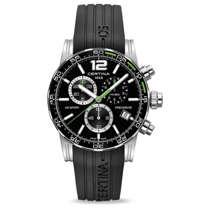 Диаметр корпуса: 42 мм. Швейцарский кварцевый механизм ETA, калибр G10.212 AA PreciDrive™, на 4 камнях. Повышенная точность хода с погрешностью не более -/+10 секунд в год. Хронограф с функцией ADD и SPLIT, центральная секундная стрелка и 30-минутный индикатор на «10 часах», указатель 1/10 долей секунды при помощи маленькой стрелки на «2 часах». Центральные часовая и минутная стрелки, маленькие секунды на «6 часах». Индикация даты в апертуре на отметке «4 часах». Функция EOL - индикация низкого уровня заряда батареи при помощи движения секундной стрелки. Особая технология повышения надежности и защиты от проникновения влаги DS+. Безель с контрастным покрытием или гравированной разметкой. Циферблат в спортивном стиле, аппликация крупных часовых индексов и элементов дизайна. Стрелки и индексы со светонакопительным покрытием Super-LumiNova® Захлопывающаяся задняя крышка с гравированным логотипом бренда.