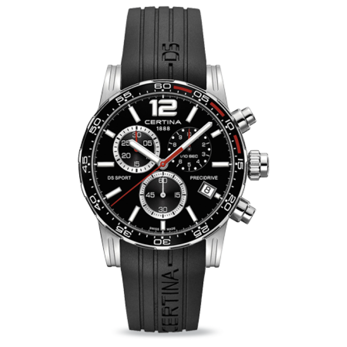 Диаметр корпуса: 42 мм. Швейцарский кварцевый механизм ETA, калибр G10.212 AA PreciDrive™, на 4 камнях. Повышенная точность хода с погрешностью не более -/+10 секунд в год. Хронограф с функцией ADD и SPLIT, центральная секундная стрелка и 30-минутный индикатор на «10 часах», указатель 1/10 долей секунды при помощи маленькой стрелки на «2 часах». Центральные часовая и минутная стрелки, маленькие секунды на «6 часах». Индикация даты в апертуре на отметке «4 часах». Функция EOL - индикация низкого уровня заряда батареи при помощи движения секундной стрелки. Особая технология повышения надежности и защиты от проникновения влаги DS+. Безель с контрастным покрытием или гравированной разметкой. Циферблат в спортивном стиле, аппликация крупных часовых индексов и элементов дизайна. Стрелки и индексы со светонакопительным покрытием Super-LumiNova® Захлопывающаяся задняя крышка с гравированным логотипом бренда.
