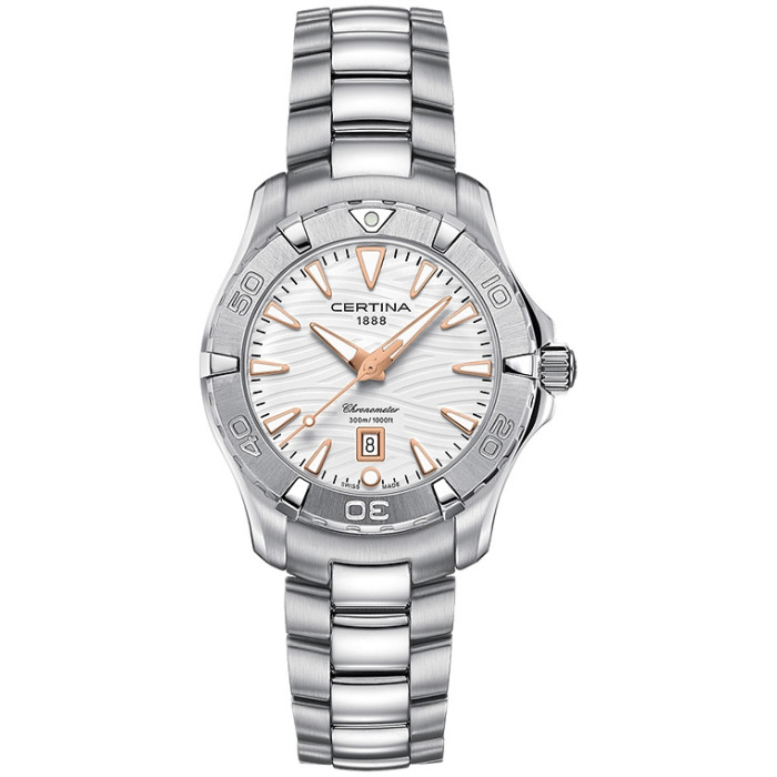 Диаметр корпуса: 34 мм. Базель 2017. Хронометр C.O.S.C (Controle Officiel Suisse des Chronometres (Официальный швейцарский институт хронометрии). Антибликовое покрытие стекла, вращающийся безель, завинчивающиеся задняя крышка и заводная головка, браслет с дайверским удлинением. Индикация даты.