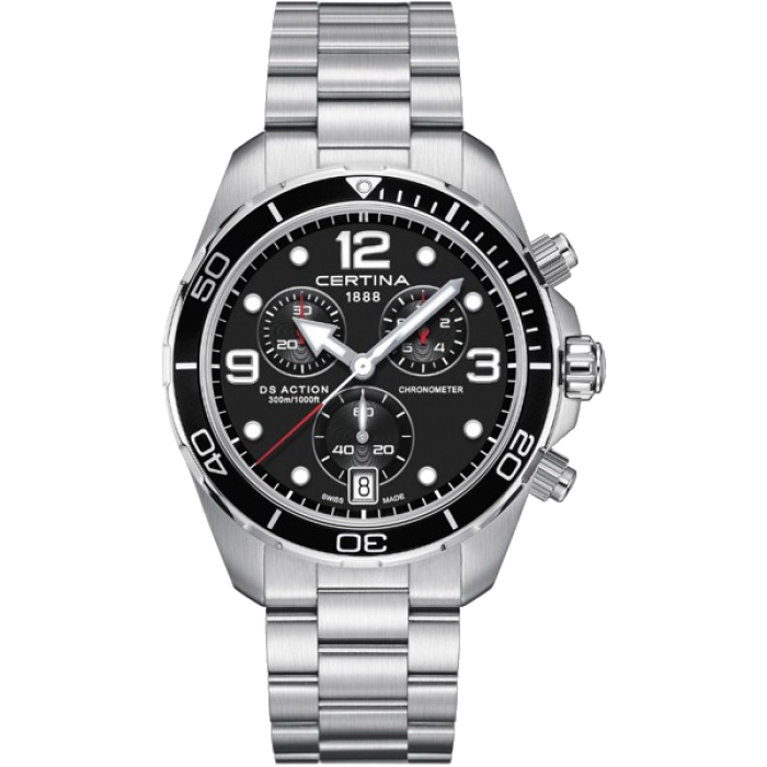 Ds Action Chrono Спортивный мужской хронограф с точностью до 1/10 секунды. Индикация даты в положении 6 часа. Люминесцентное покрытие на стрелках и разметке. Хронометр C.O.S.C.