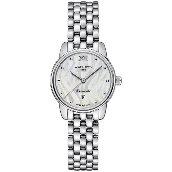 Диаметр корпуса: 27,5 мм. Сертификат хронометра C.O.S.C. Антибликовое покрытие стекла, перламутровый циферблат. Высокоточный кварцевый механизм с технологией Precidrive™. EOL. Индикация даты. Базель 2018.