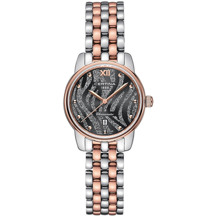 Диаметр корпуса: 27,5 мм. Сертификат хронометра C.O.S.C. Антибликовое покрытие стекла, безель и часть звеньев браслета - PVD-покрытие цвета розового золота. Высокоточный кварцевый механизм с технологией Precidrive™. EOL. Индикация даты. Базель 2018.