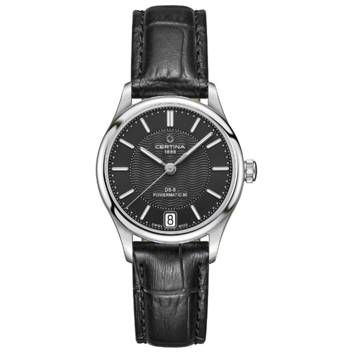 Диаметр корпуса: 31,5 мм. Элегантные классические часы. Индикация даты на "6" часов, люминесцентное покрытие индексов, часовой и минутной стрелок, прозрачная задняя крышка. Запас хода 80 часов.