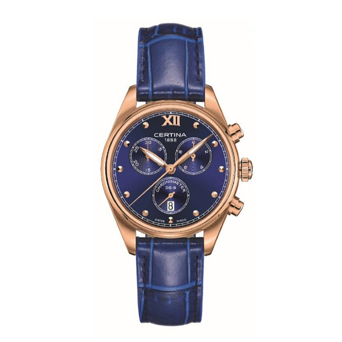 Диаметр корпуса: 34,5 мм. Стильный женский хронограф. 30-минутный счетчик в положении 10 часов, счетчик 1/10 секунды на 2 часа и малая секунда на 6 часов. Апертура даты в положении 6 часов. хронометр C.O.S.C.(Controle Officiel Suisse des Chronometres (Официальный швейцарский институт хронометрии). Базель 2018.