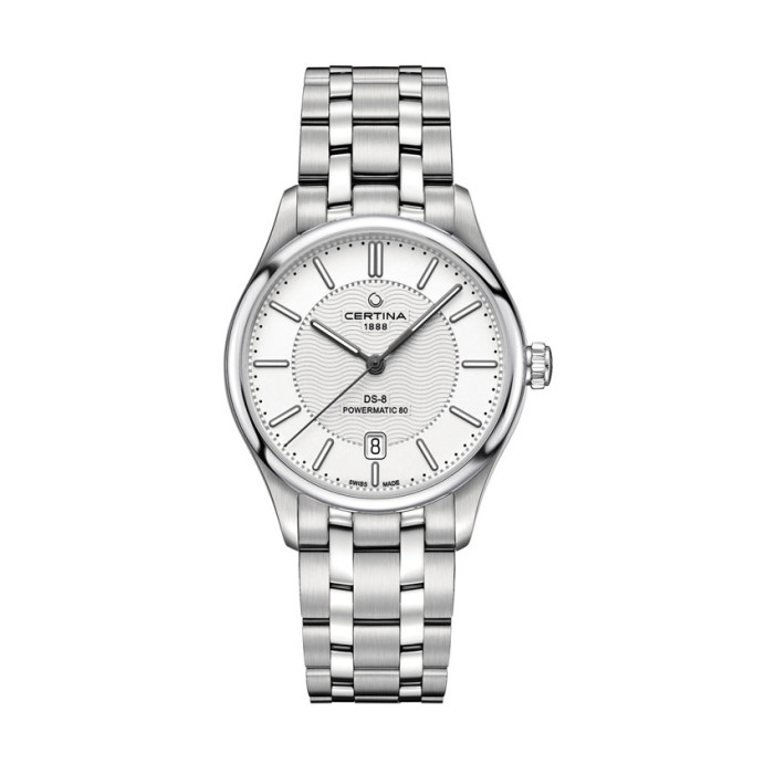 Диаметр корпуса: 39 мм. Механический с системой автоматического подзавода. Индикация даты на "6" часов, люминесцентное покрытие индексов, часовой и минутной стрелок, прозрачная задняя крышка. Запас хода 80 часов.