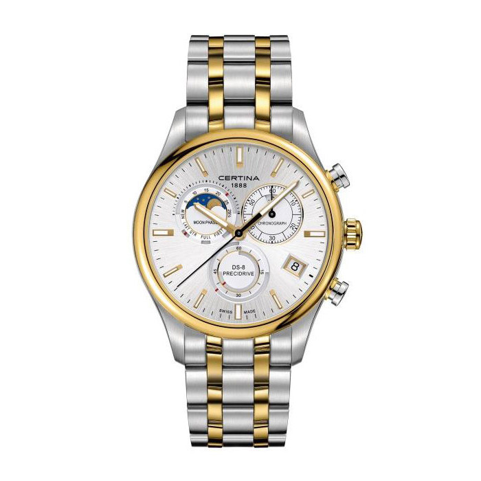 Диаметр корпуса: 42 мм, толщина 11,8 мм. Базель 2016. Повышенная точность хода с погрешностью не более -/+10 секунд в год. Хронограф с функцией ADD и SPLIT, центральная секундная стрелка и 60-минутный индикатор на «2 часах». Центральные часовая и минутная стрелки, дисковый секундный на «6 часах». Лунные фазы на «10 часах». Индикация даты в апертуре на отметке «4 часа». Функция EOL - индикация низкого уровня заряда батареи при помощи движения секундной стрелки. Особая технология повышения надежности и защиты от проникновения влаги DS (Double Security). Стрелки и индексы со светонакопительным покрытием Super-LumiNova® Защелкивающаяся задняя крышка с гравированным логотипом бренда. Браслет с литыми звеньями из нерж. стали, браслетная застежка тройного сложения типа «бабочка», раскладывающаяся при нажатии на кнопки.