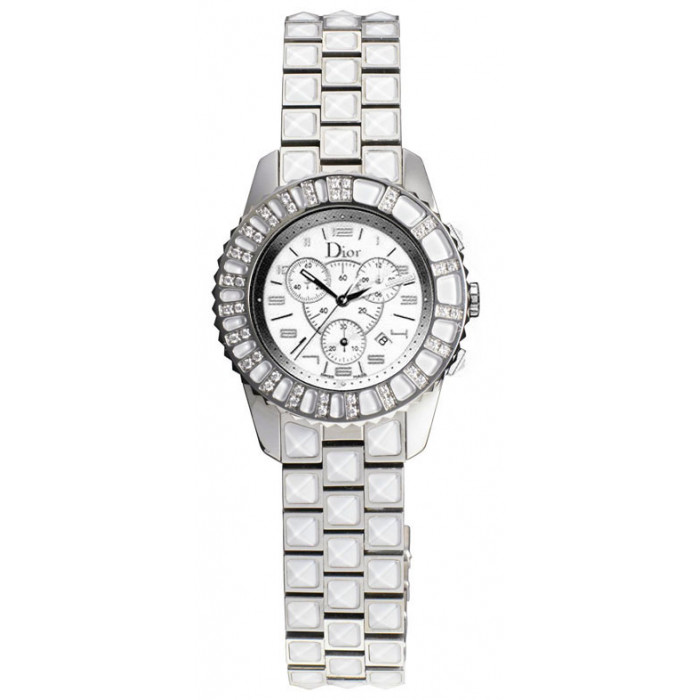 Нержавеющая сталь, 3 ряда белых сапфиров пирамидальной формы |