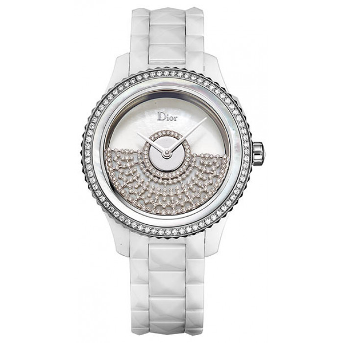 Белый перламутр, циферблат ажурный и бриллиантовый |