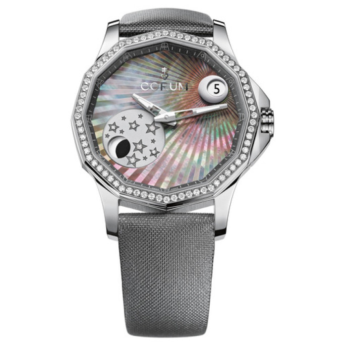Представляем вашему вниманию часы фирмы Corum, артикул 384.101.47/F149 AN01. Родиной этой фирмы является Швейцария. С часами Корум вы будете постоянно ловить на себе заинтересованные взгляды. Прекрасный выбор для любителей модных часов. Материал корпуса - сталь. Часы с удобным ремнём. В качестве украшения используются бриллианты. Цвет ремня - серый. Одной из особенностей часов является функция индикации фаз луны. Размер часов D 39 мм.