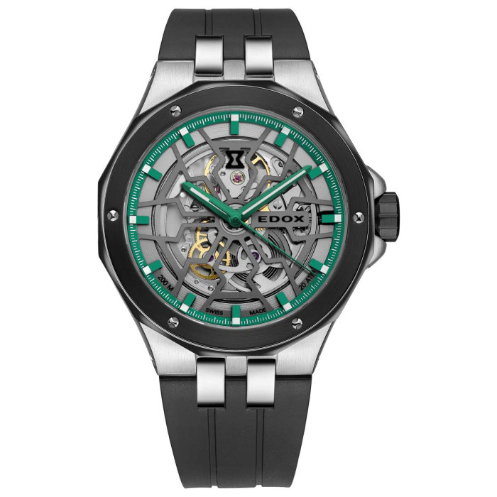 Особенности | Заводная головка Edox с двойным уплотнительным кольцом, люминесцентные стрелки и индексы, завинчивающаяся заводная головка, прозрачная задняя крышка |