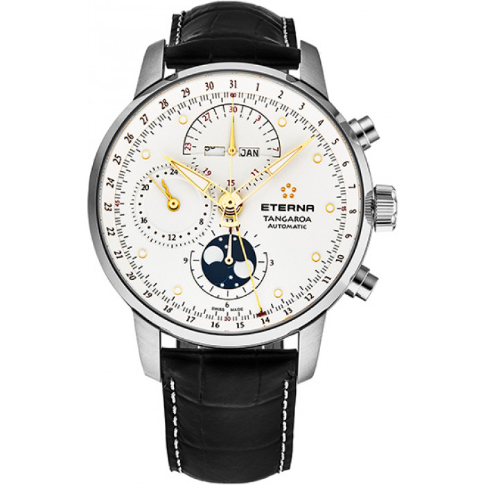 Вечный календарь, центральная стрелка даты,день и месяц в положении «12 часов», фаза луны |