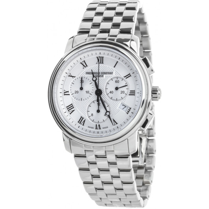 Корпус круглой формы выполнен из легированной стали, не поддающейся ржавчине и обладающей высокой прочностью, поверхности с финишной обработкой. Диаметр корпуса модели Classics Chronograph FC-292MC4P6B2 составляет 40 мм, толщина - 10.2 мм. Задняя крышка с гравировкой имеет резьбовое соединение с корпусом. Водостойкость 60 метров (6 АТМ)
