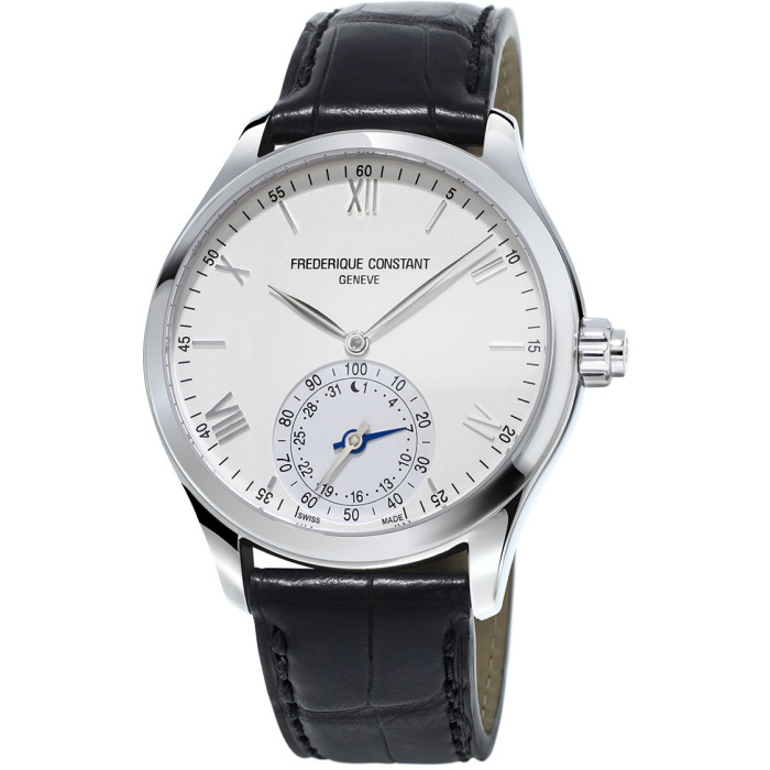 Horological Smartwatch. Смарт-часы. В моделях Horological Smartwatch швейцарская часовая компания Frederique Constant сумела удачно объединить дух и стиль настоящих швейцарских часов и ультрасовременные интерактивные возможности компьютерных технологий. Синхронизация со смартфоном. Приложения iOS и Android в виде простых и удобных графиков отображают информацию о том, сколько времени человек затратил на сон и активную деятельность на протяжении дня, недели и месяца. Синяя стрелка на индикаторе у 6-часовой отметки днем показывает дату, а ночью, когда вы спите, останавливается у изображения луны. Стальная стрелка индикатора демонстрирует уровень вашей физической активности или заданный режим сна. Часы поддерживают следующие функции: контроль физической активности MotionX, контроль сна Sleeptracker, будильник по фазам сна, извещения Get-Active и «умный» тренер. Ремешок с раскладывающейся застежкой.