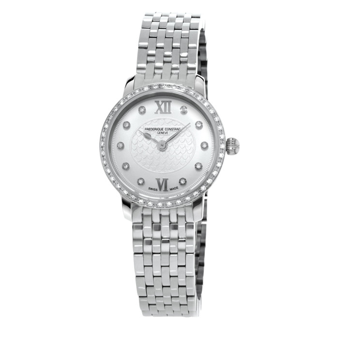 Швейцарские часы Frederique Constant Slimline Mini FC-200WHDSD6B с традиционным дизайном предназначены для элегантных, уверенных в себе женщин. Сочетание традиционного и роскошного стилей.Тонкий корпус круглой формы и миниатюрного размера и литой браслет, выполнены из высококачественной стали. Безель и циферблат Frederique Constant Slimline Mini, украшены бриллиантами.