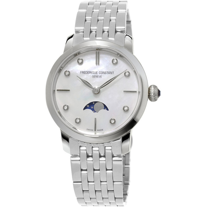 Модель входит в коллекцию Slimline. Это модные женские часы. Материал корпуса часов — сталь. В этих часах используется сапфировое стекло. Основной цвет циферблата белый. Из основных функций на циферблате представлены: часы. В этой модели используются такие усложнения как фаза луны, . Диаметр корпуса 30мм. При создании этих часов использованы натуральные бриллианты.