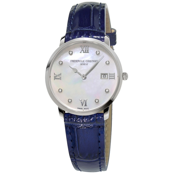 Швейцарские часы Frederique Constant Slimline FC-220MPWD3S6, предназначенные для женщин, являются идеальным воплощением элегантности и традиционного стиля. Тонкий корпус Frederique Constant Slimline из высококачественной стали дополнен кожаным ремешком, перламутровый циферблат украшен бриллиантами.