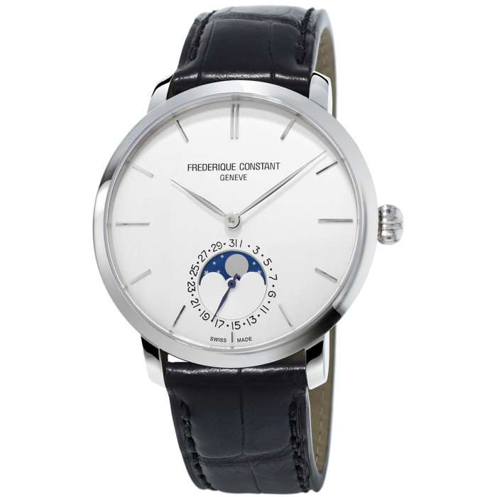 Модель входит в коллекцию Slimline. Это настоящие мужские часы. Материал корпуса часов — сталь. Стекло - сапфировое. Цвет циферблата - белый. Из основных функций на циферблате представлены: часы, минуты, секунды. В этой модели используются такие усложнения как дата, фаза луны, . Корпус часов в диаметре 42мм.