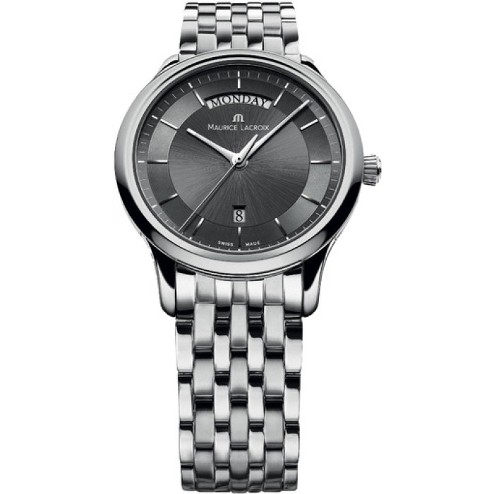 Швейцарские часы Maurice Lacroix, LC1227-SS002-330 из коллекции Les Classiques. Прекрасный образец классических часов Морис Лакруа для людей, ценящих, в первую очередь, своё время. Удобные часы, тип калибра - кварцевый. Материал браслета и корпуса - сталь. На циферблате есть указатель даты. Габариты корпуса - D 38 мм.